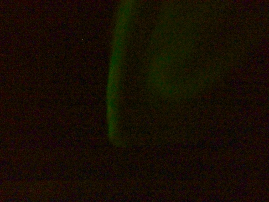 Nous entrons dans une vallée large et montagneuse et soudain, nous freinons sèchement au milieu d’une immense ligne droite, la vision est idyllique et inespérée dès le premier jour, des lueurs vertes, immenses et majestueuses oscillent dans le ciel devant nous !