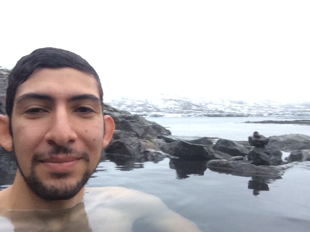 Cependant, sur le trajet et bien avant la tempête nous avons eu la chance de trouver une des sources d’eau chaude naturelle et en libre accès, au bord de la route, incontournable vraiment, notez : HELLULAUG.