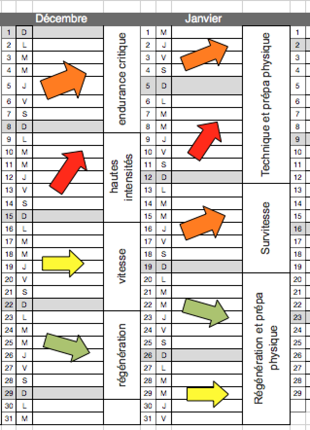 => Programme d’entrainement détaillé sur 6 mois :